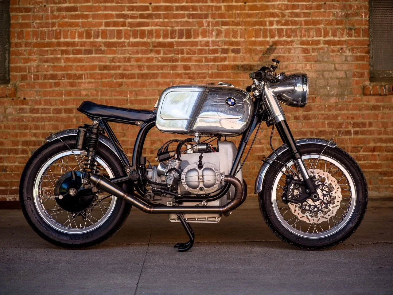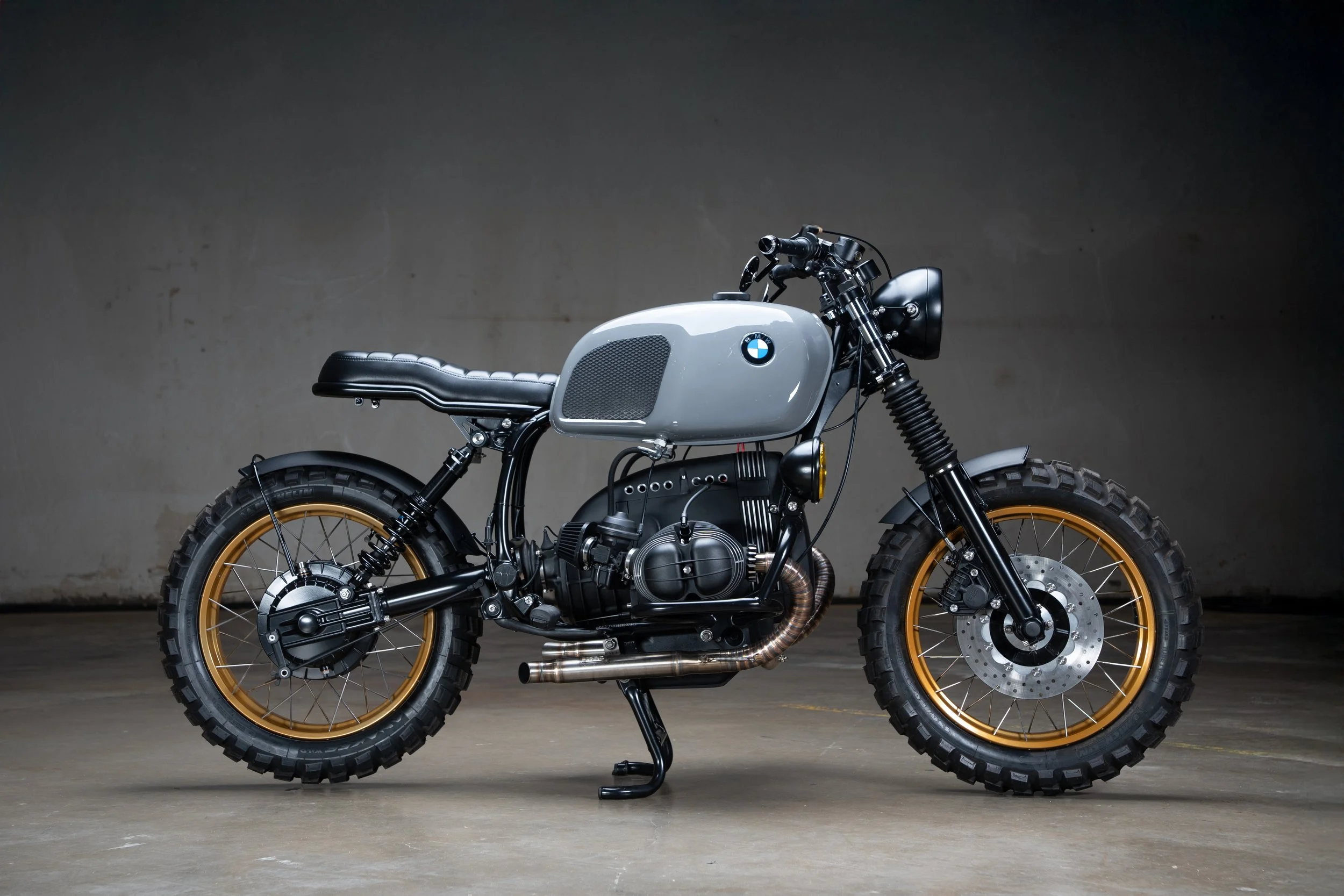 RS24 - In 1954 BMW made 24 RS54 race bikes which remain iconic to this day. In 2024 I sought to carry that spirit forward. The result; a one of a kind full race spec engine, modified frame, custom suspension, huge disc brakes front and rear, all paired with one of one hand made aluminum body work crafted by Evan Wilcox.